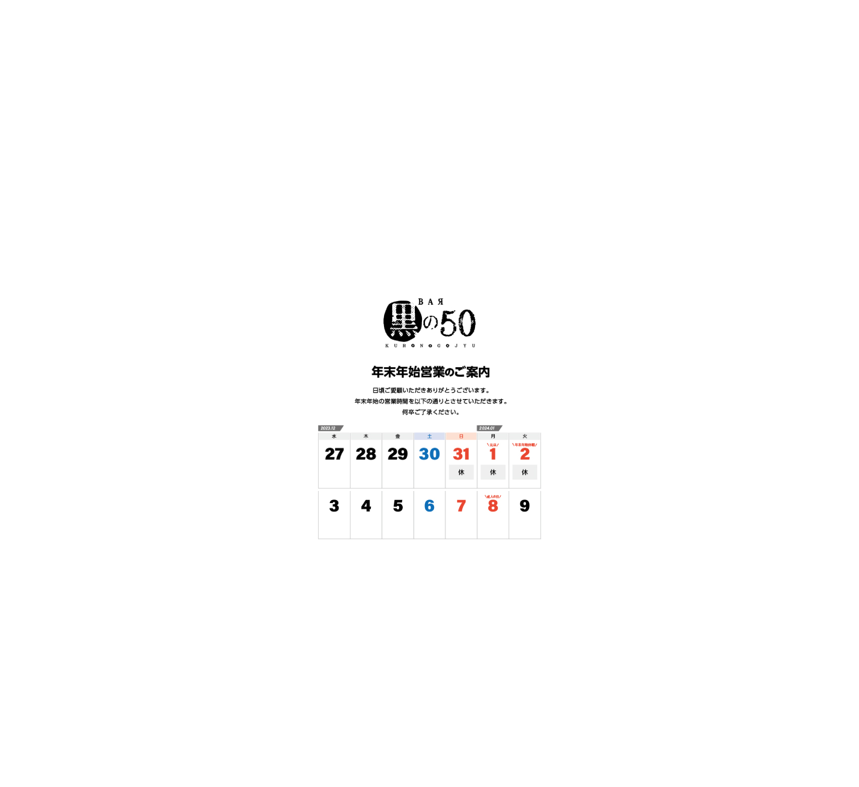 12月31日(日)〜1月2日(火)までお休みをいただき、